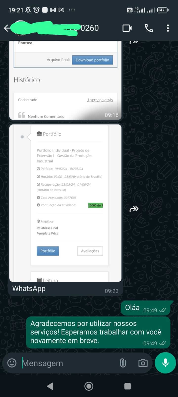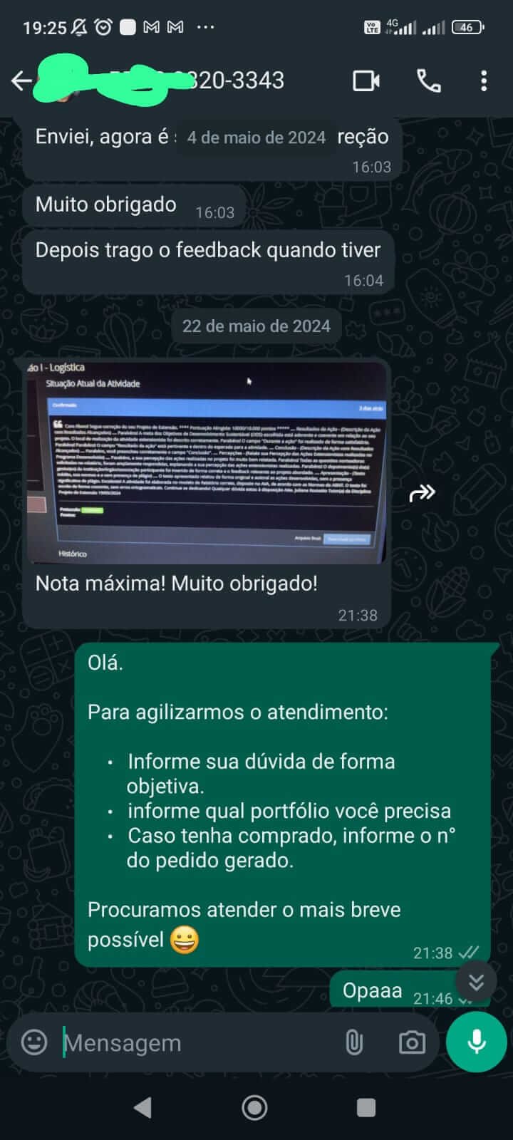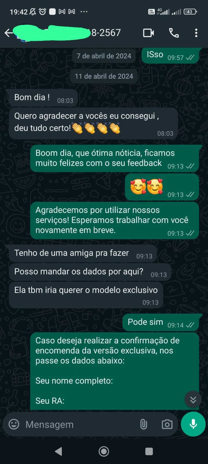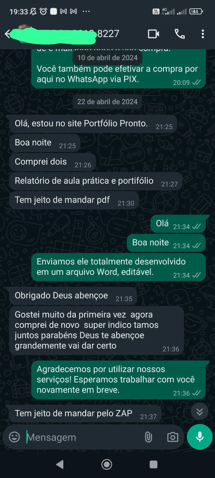 - Encomende via WhatsApp: Abrir conversa