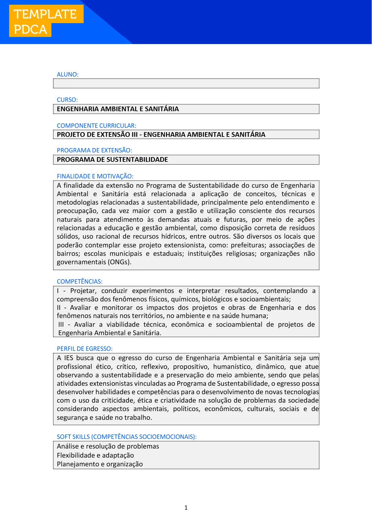 Aluno e Aluna, essa atividade é para sua organização e uso da metodologia PDCA. Por isso é um documento orientativo e não precisa ser entregue. Veja as orientações apresentadas no MANUAL DE ATIVIDADES EXTENSIONISTAS.